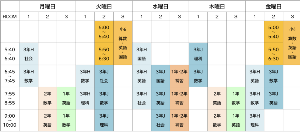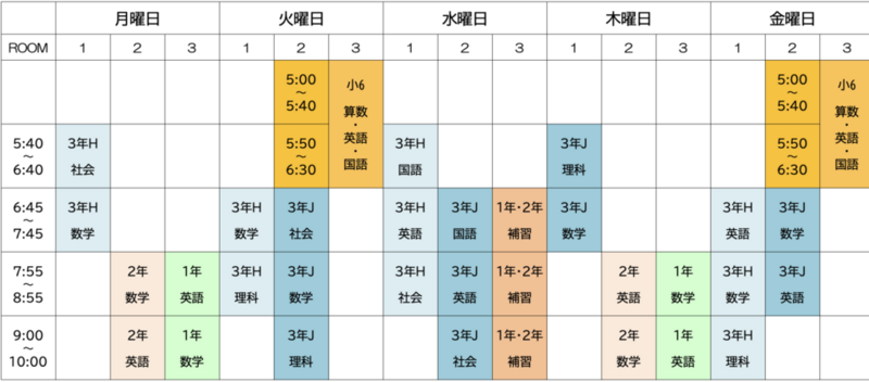 ※ 水曜日(または火曜日)に補習コマを設けています!