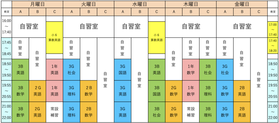3年G組 火・水・金 18:50~22:00
