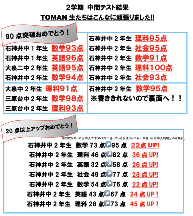 10/16【大泉南】定期テスト結果速報&今週末の予定