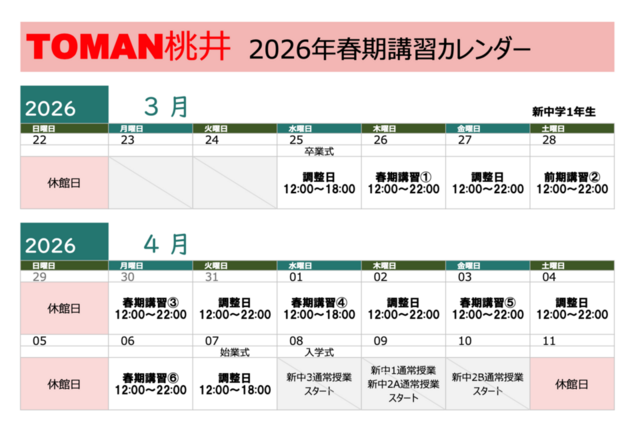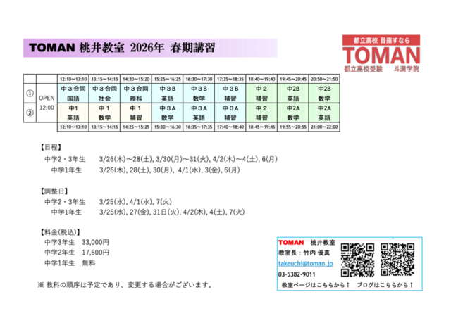 桃井教室: 2026春期講習(NEW!!)