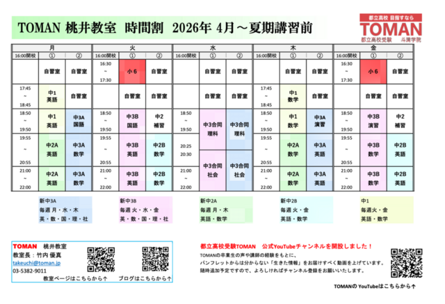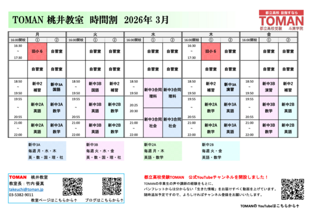 桃井教室: 2026時間割(NEW!!)